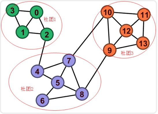 假设我们有如下社区分布:13个结点,23条边,分成3个社区