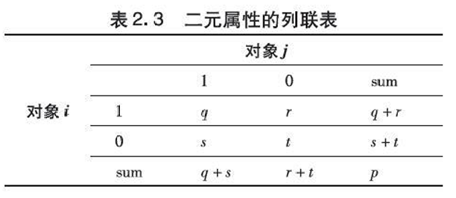 有时会认为负匹配t不重要(这种属性叫非对称二元属性),对应的相异性: