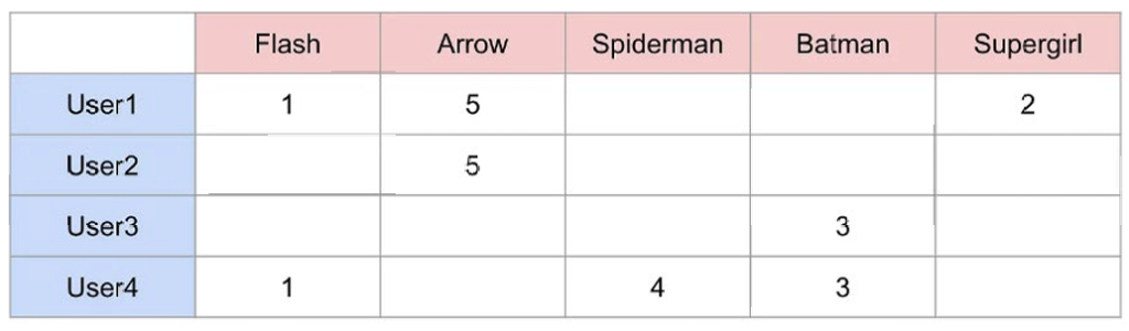 首先建立效用矩阵,代表每个用户-物品对的评分