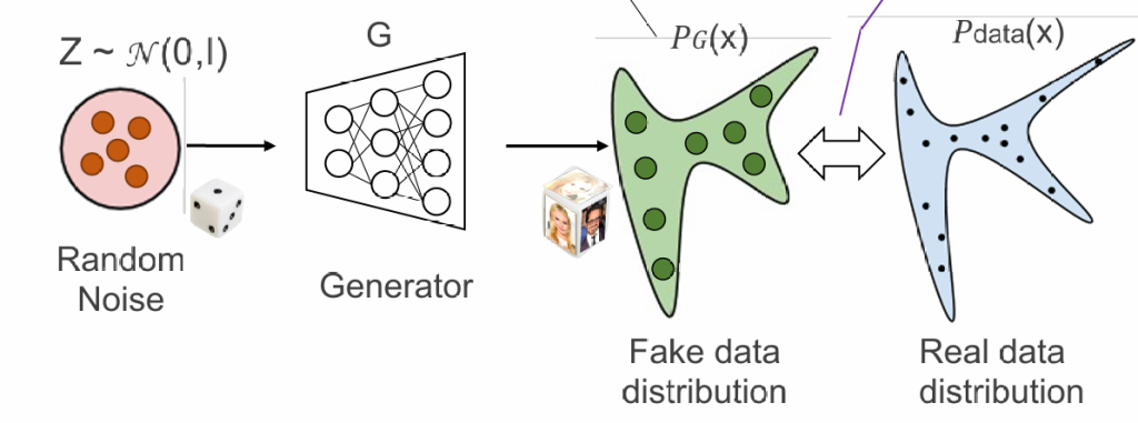 引入一个判别器:判断一张图片是否由ai生成,当生成模型可以以假乱真,那么说明分布是一致的。