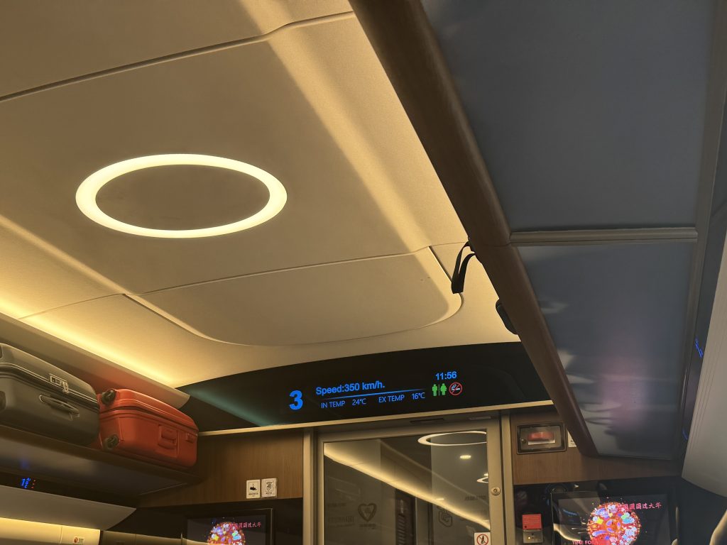 明明才吃了一顿驴肉火烧,怎么已经五号下午了😭😭😭。因为不用收拾宿舍,所以这次返校比之前晚了很多。机联是10点钟末班车,G23/25是赶不上了,所以正好刷一次G21全程。去年10月份其实已经坐过一次G21,还在车上遇到了角老师和修德,不过当时只是沪宁段,并且因为淮河流域大雨导致京沪运行图乱得一团糟,全程没有达速运行。虽说是京沪间最快的列车,G21今天在山东段降速了几次,到南京南还晚点了几分钟。沪宁段全程340+倒是把晚点追了回来,不过350终究没有出现在显示屏上。